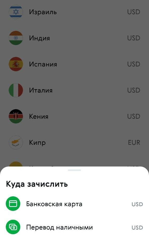 Шаг 1: Выбор страны и способа перевода